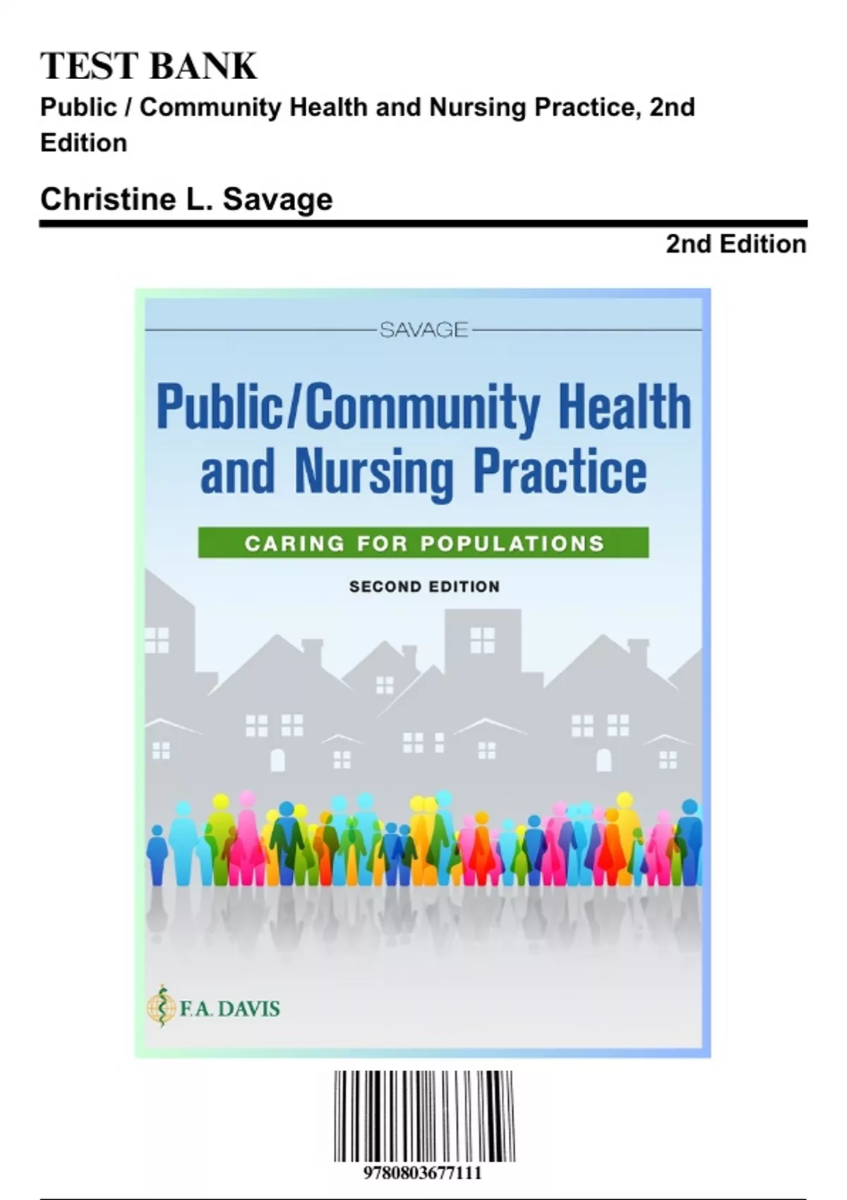 Test Bank: Public / Community Health and Nursing Practice, 2nd Edition 2nd Edition by Savage - Ch. 1-22, 9780803677111, with Rationales