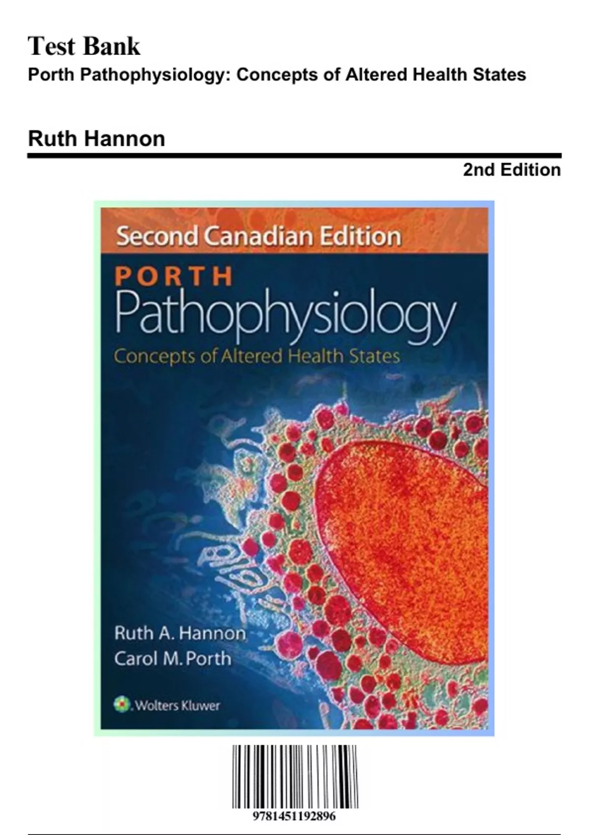 Test Bank for Porth Pathophysiology: Concepts of Altered Health States, 2nd Edition by Ruth, 9781451192896, Covering Chapters 1-61 | Includes Rationales