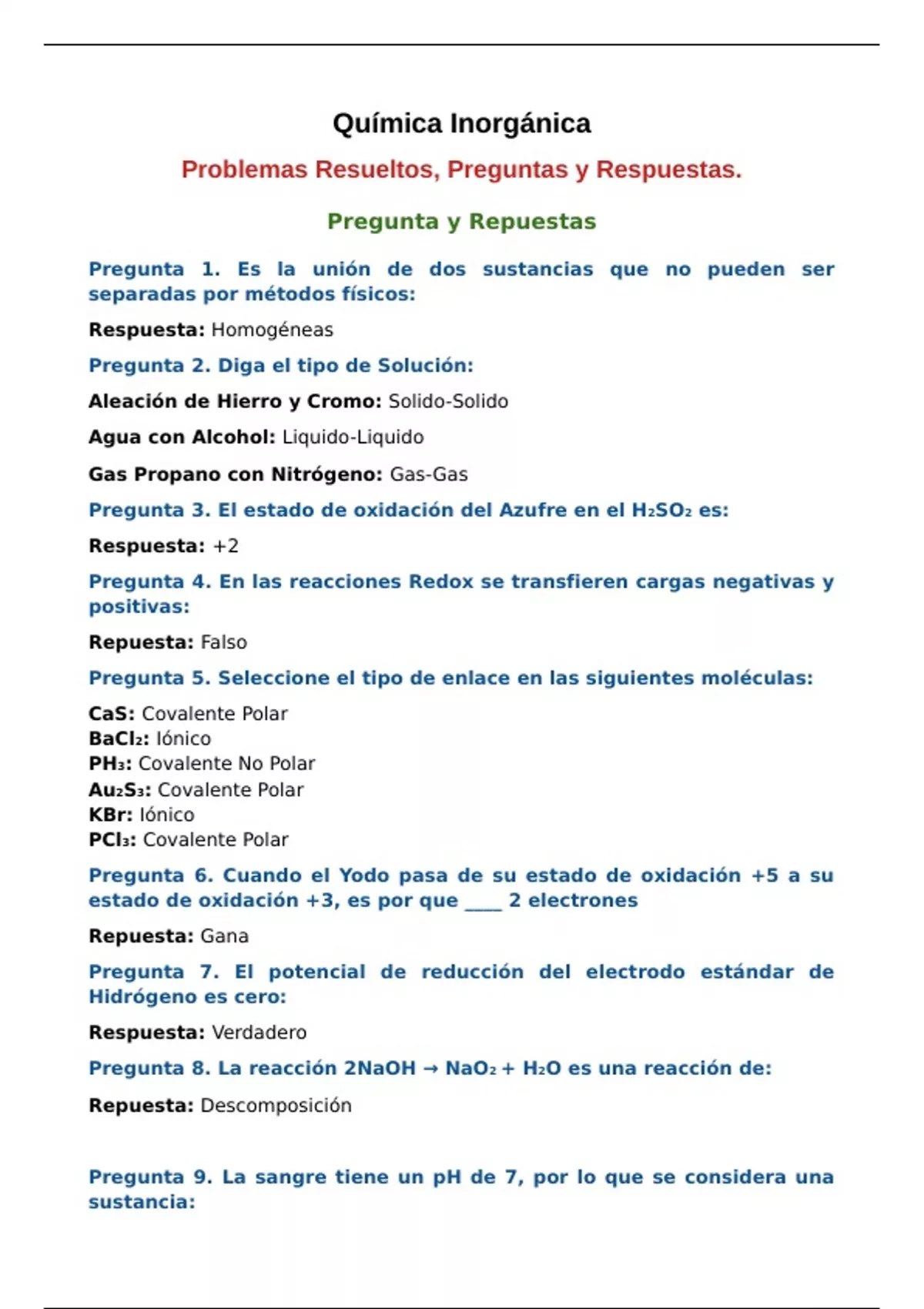 Problemas Resueltos, Preguntas y Respuestas.
