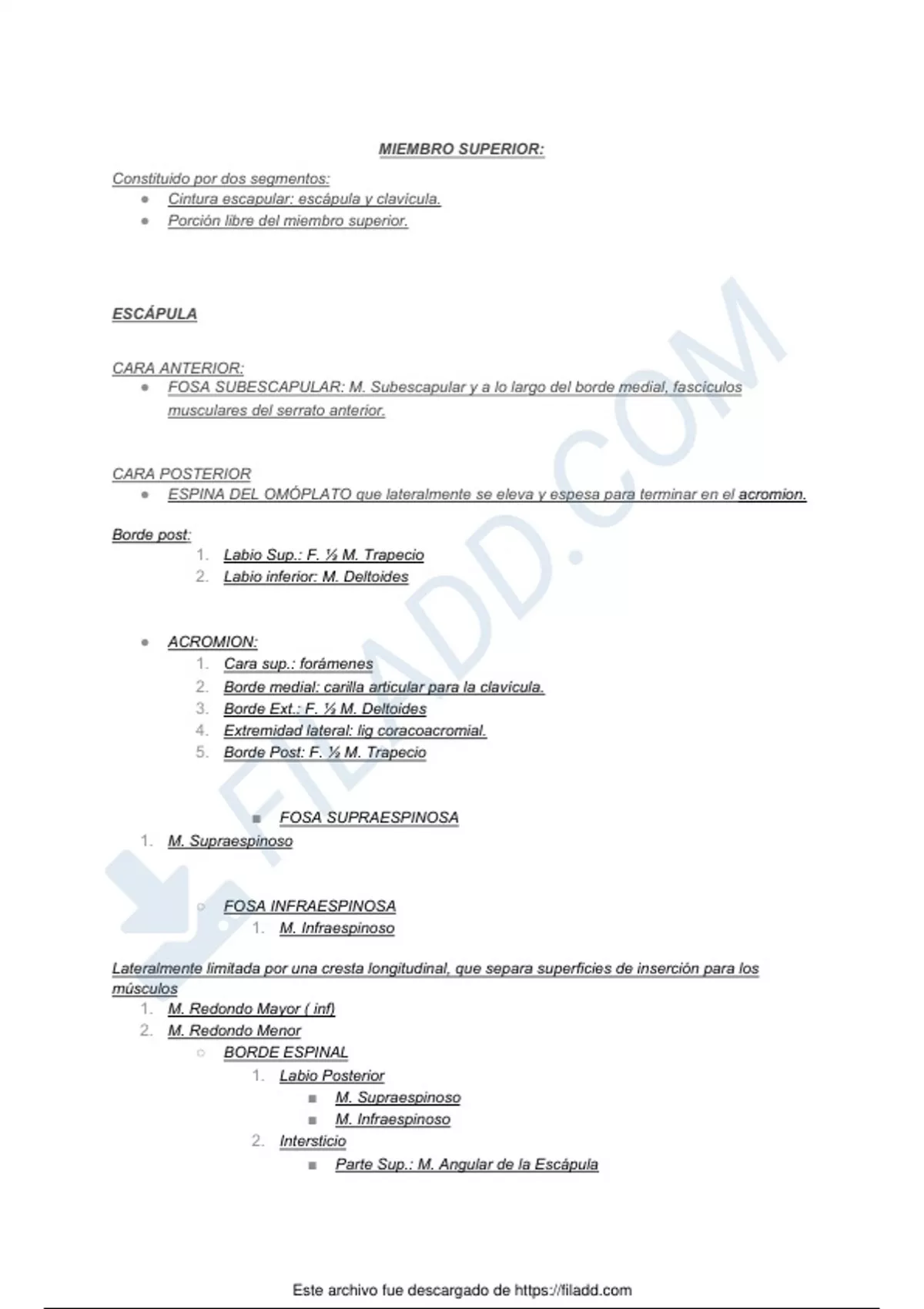 ● FOSA SUBESCAPULAR: M. Subescapular y a lo largo del borde medial, fascículos