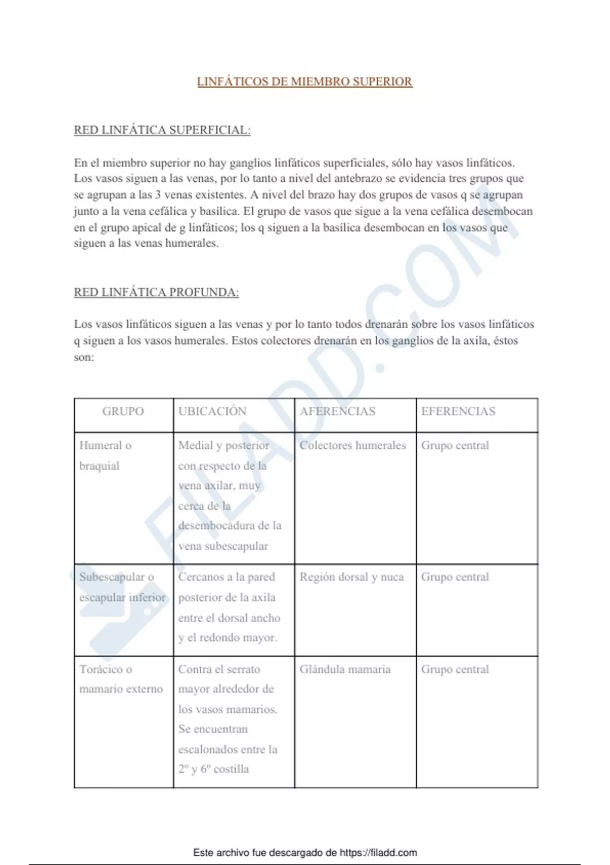 En el miembro superior no hay ganglios linfáticos superficiales, sólo hay vasos linfáticos.