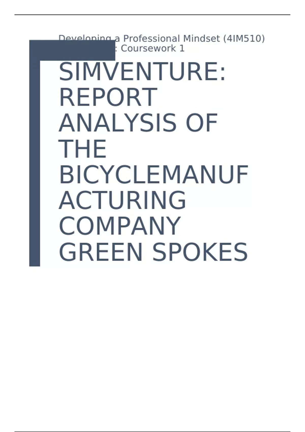 SIMVENTURE: REPORT ANALYSIS OF THE BICYCLEMANUFACTURING COMPANY GREEN SPOKES