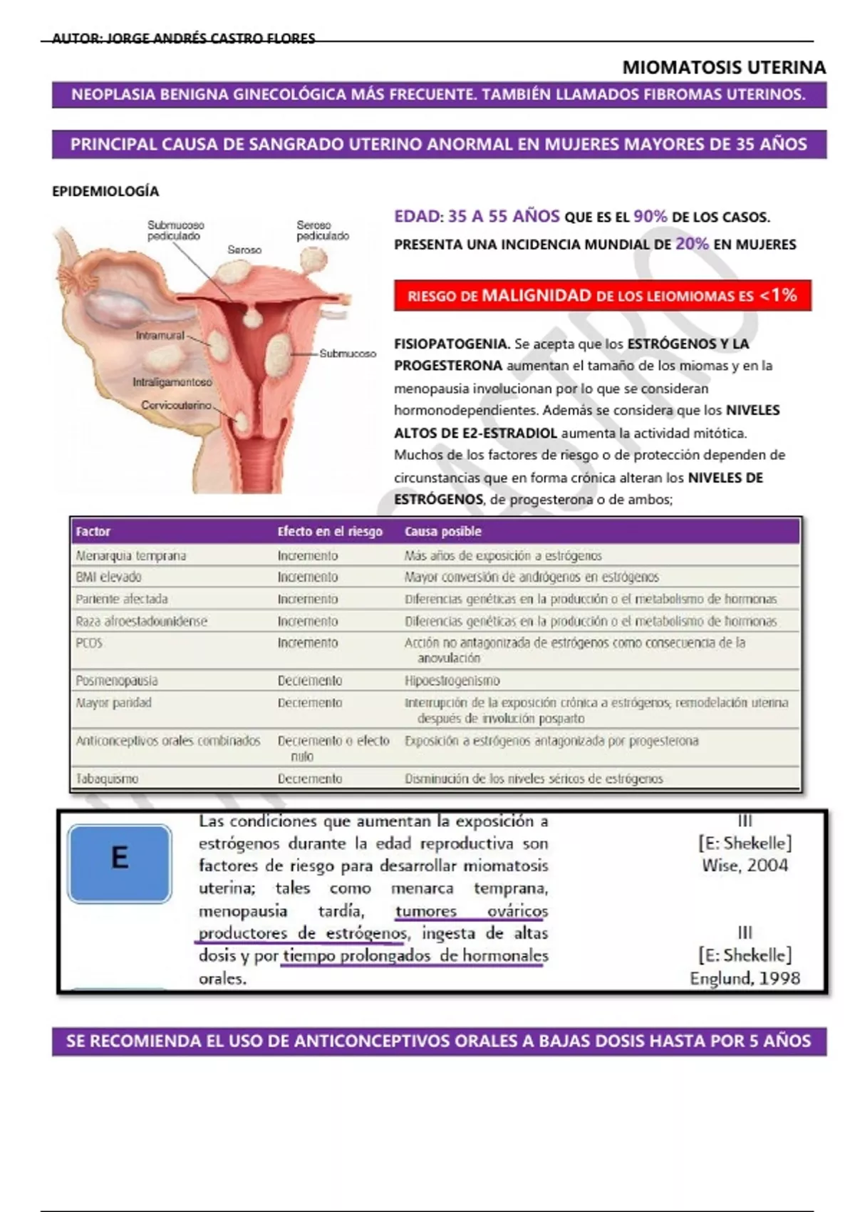 Sumario Miomatosis Uterina en el Primer y Segundo Nivel de Atencion