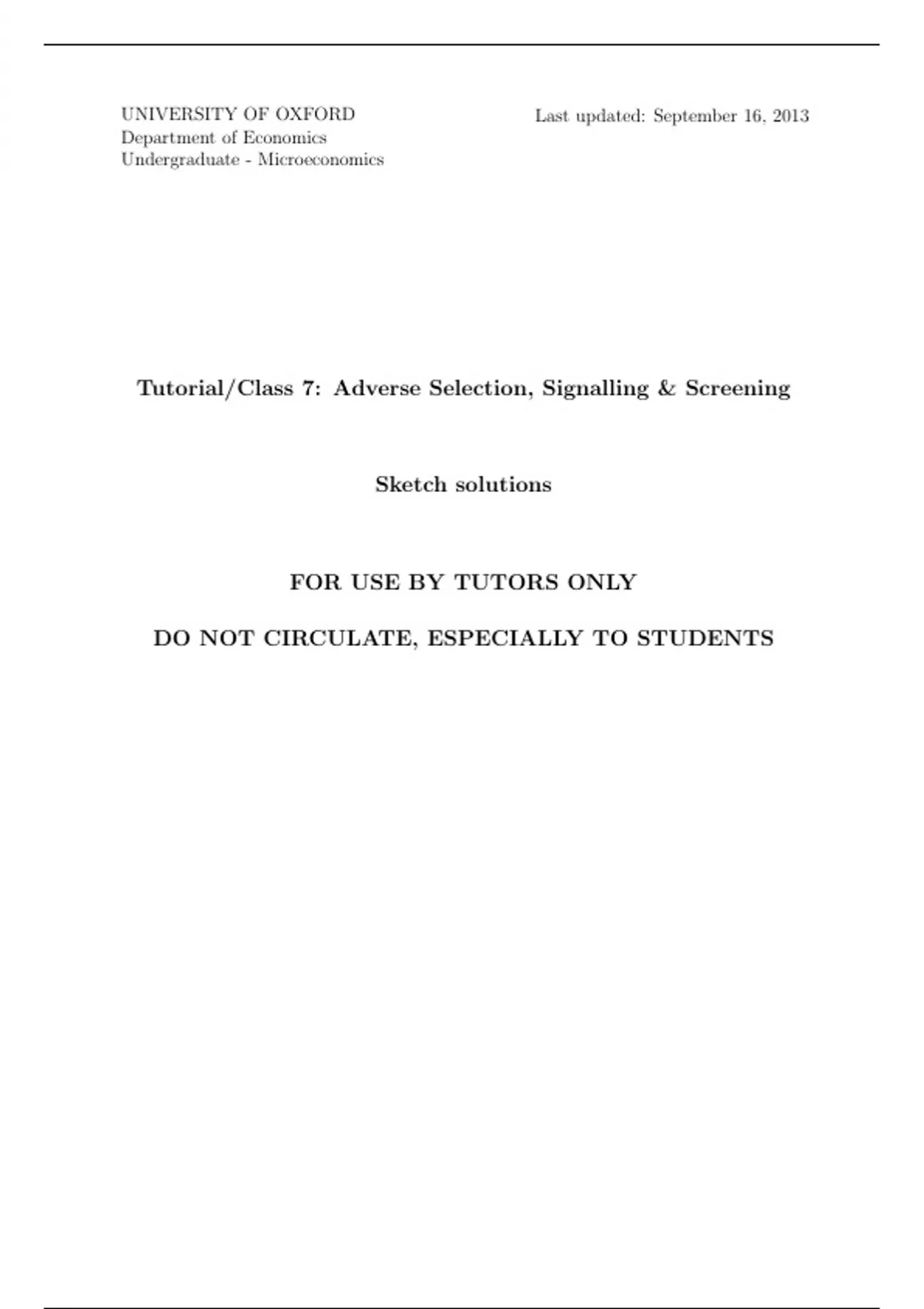 Tutorial/Class 7: Adverse Selection, Signalling & Screening