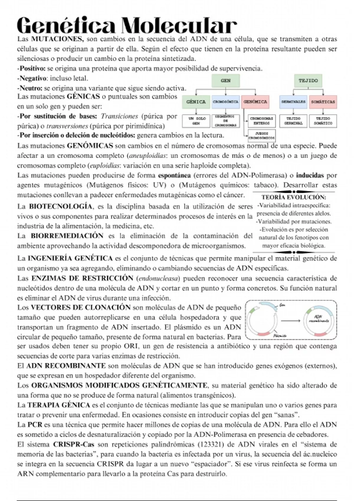 Apuntes de biología genética, con ilustraciones y explicaciones detalladas para PEVAU.
