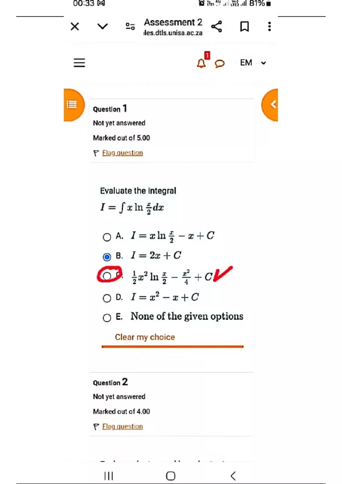 MAT1613 Assignment 2 Complete Solutions UNISA 2024 MCQ CALCULUS B