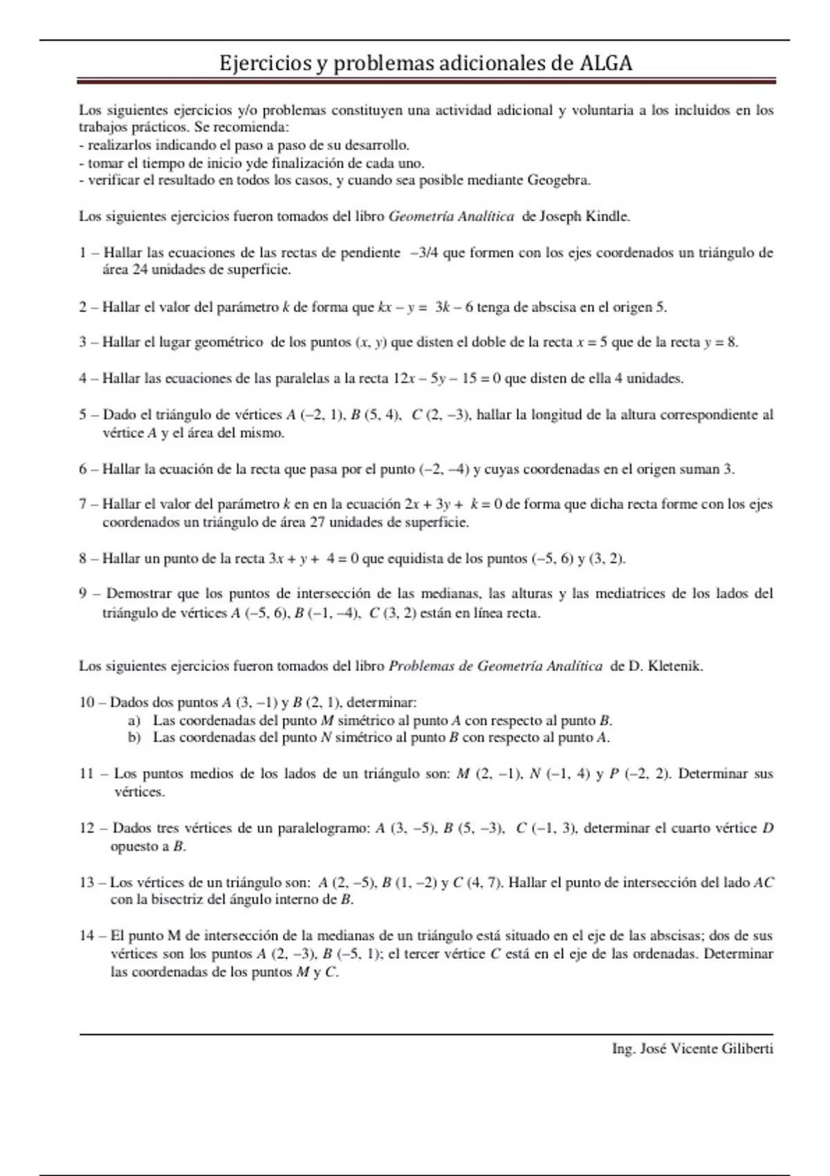 Los siguientes ejercicios fueron tomados del libro Geometría Analítica de Joseph Kindle.
