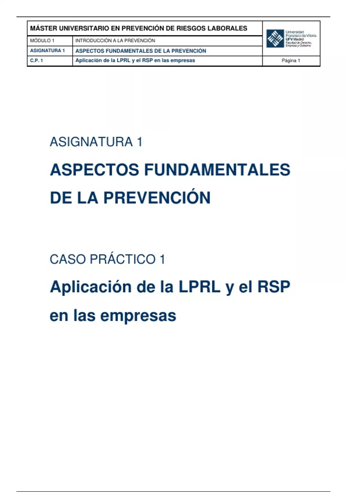 C.P. 1 Aplicación de la LPRL y el RSP en las empresas Página 2