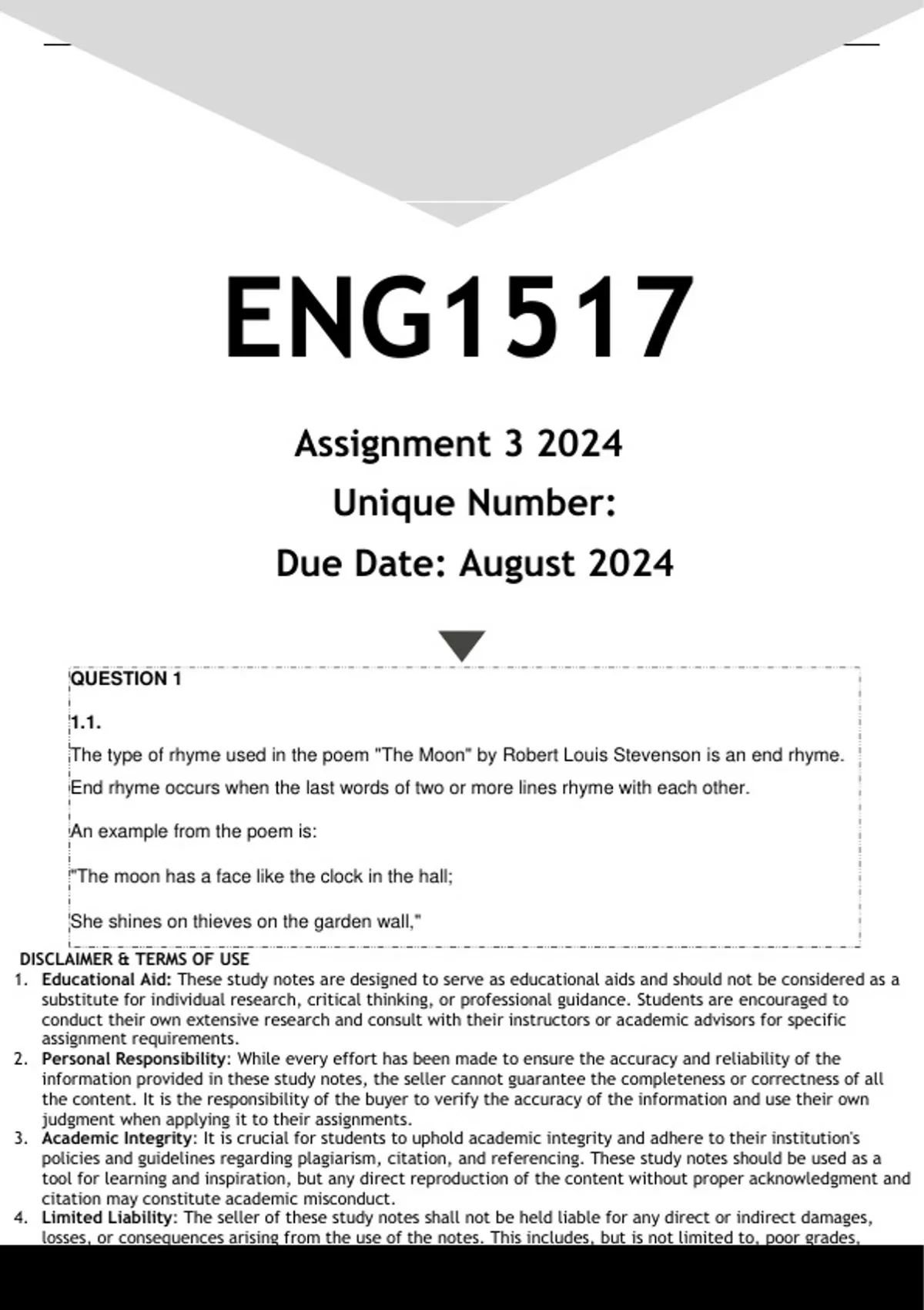 4. Limited Liability: The seller of these study notes shall not be held liable for any direct or indirect damages,