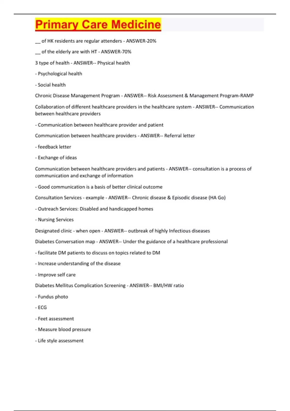 Diabetes Mellitus Complication Screening - ANSWER-- BMI/HW ratio