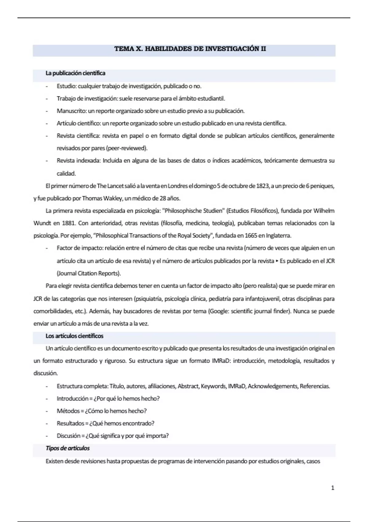 - Manuscrito: un reporte organizado sobre un estudio previo a su publicación.