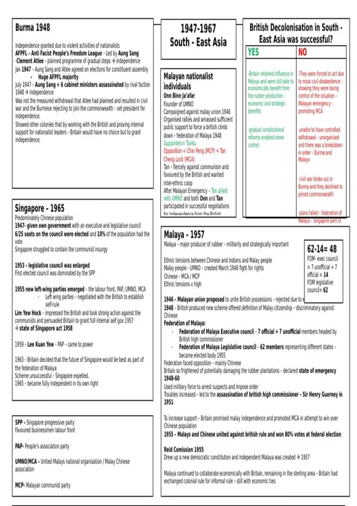Singapore struggled to contain the communist insurgy 62-14= 48