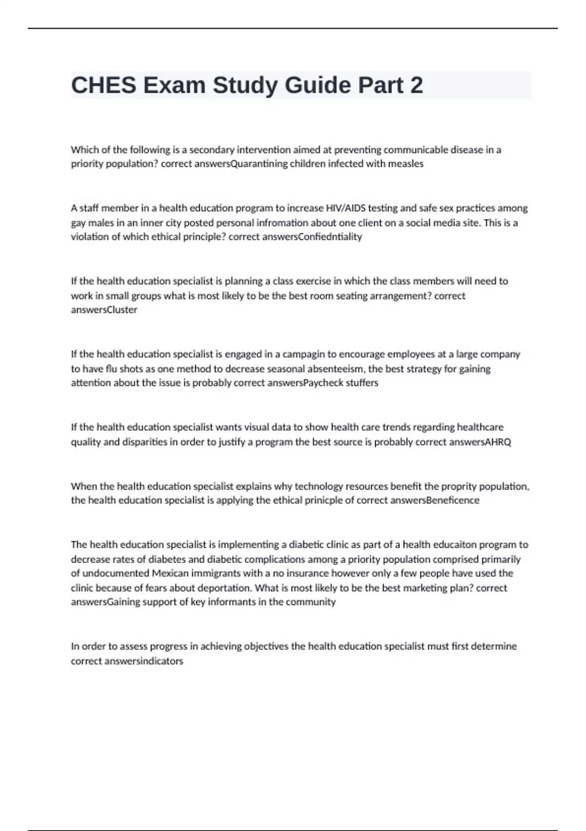 correct answersindicators