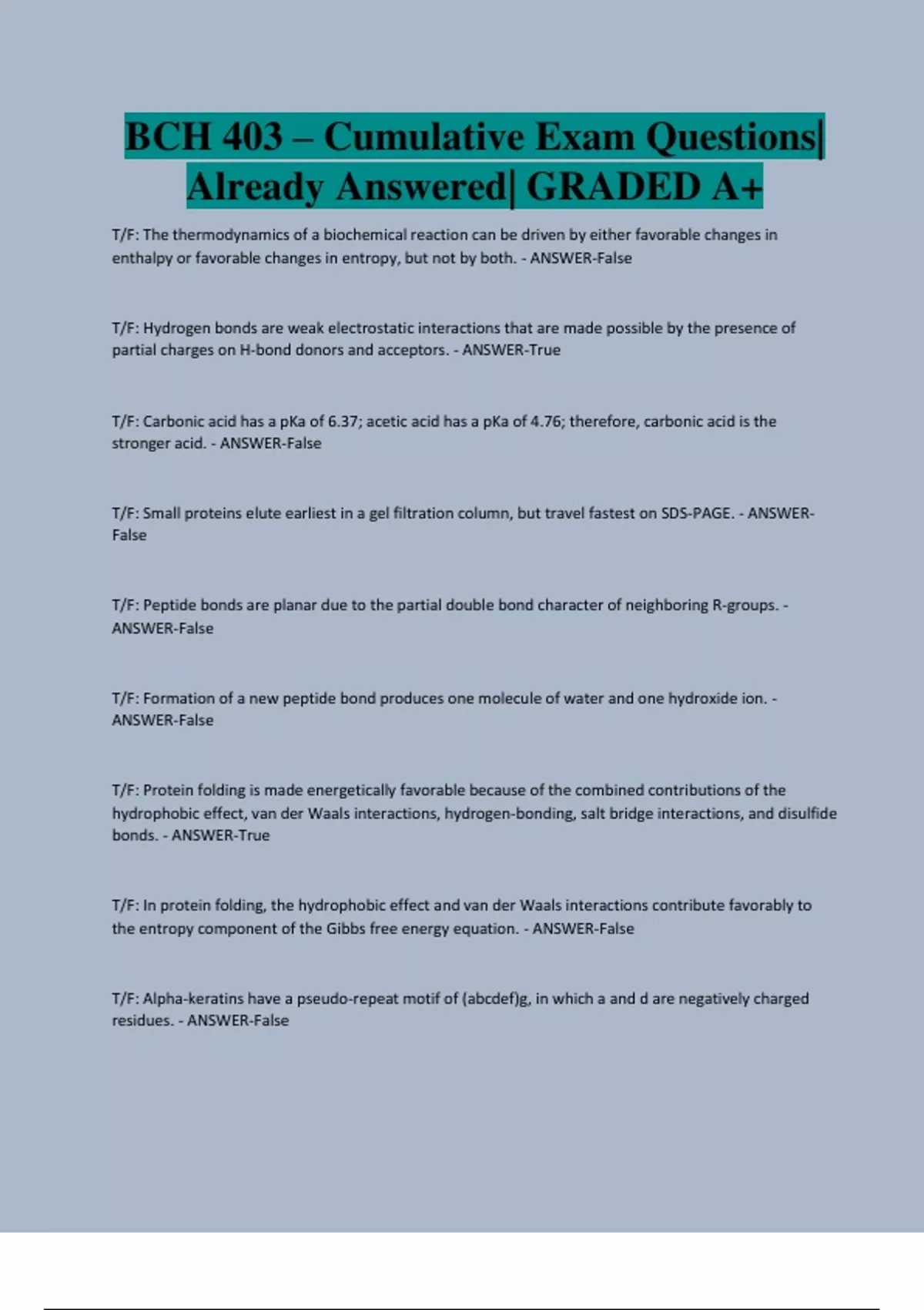 T/F: Protein folding is made energetically favorable because of the combined contributions of the