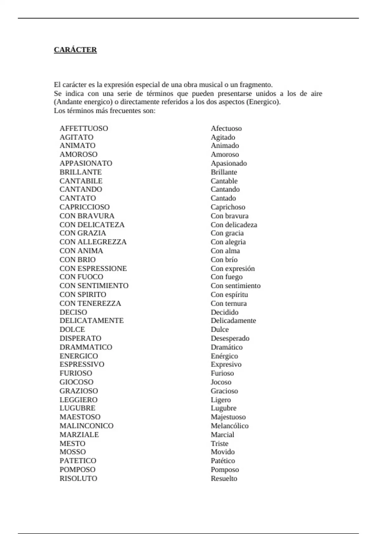 El carácter es la expresión especial de una obra musical o un fragmento.
