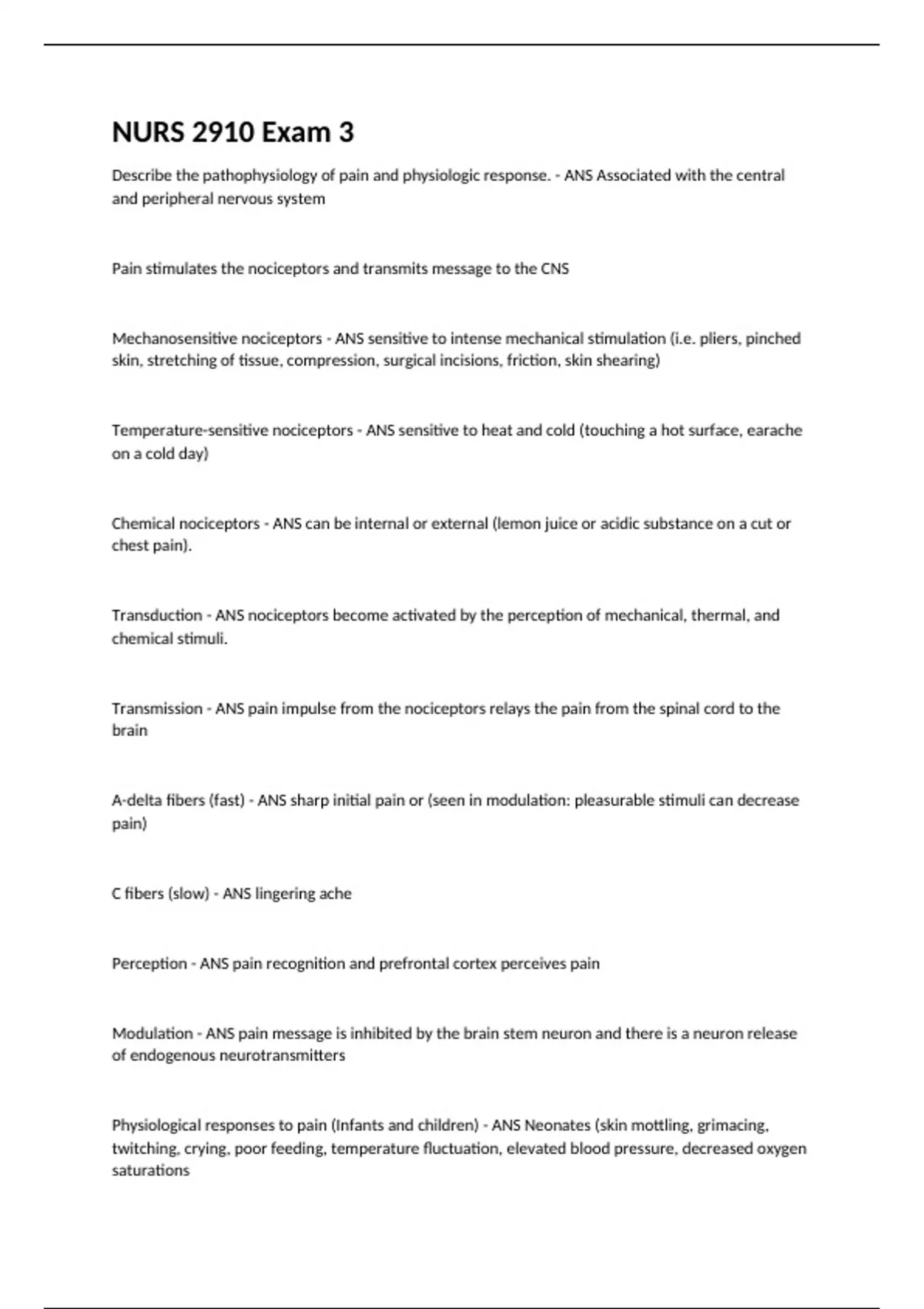 NURS 2910 Exam 3 NURS 2910 Exam 3 NURS 2910 Exam 3
