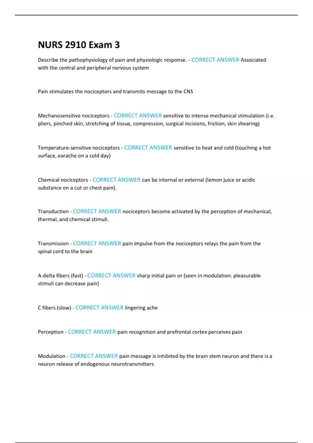 NURS 2910 Exam 3 NURS 2910 Exam 3 NURS 2910 Exam 3