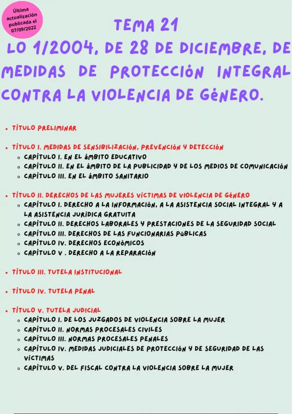 TEMA 21. LO 1/2005 DE MEDIDAS DE PROTECCIÓN INTEGRAL CONTRA LA VIOLENCIA DE GÉNERO (Actualizado 2024) Sellos examen y memoriza.
