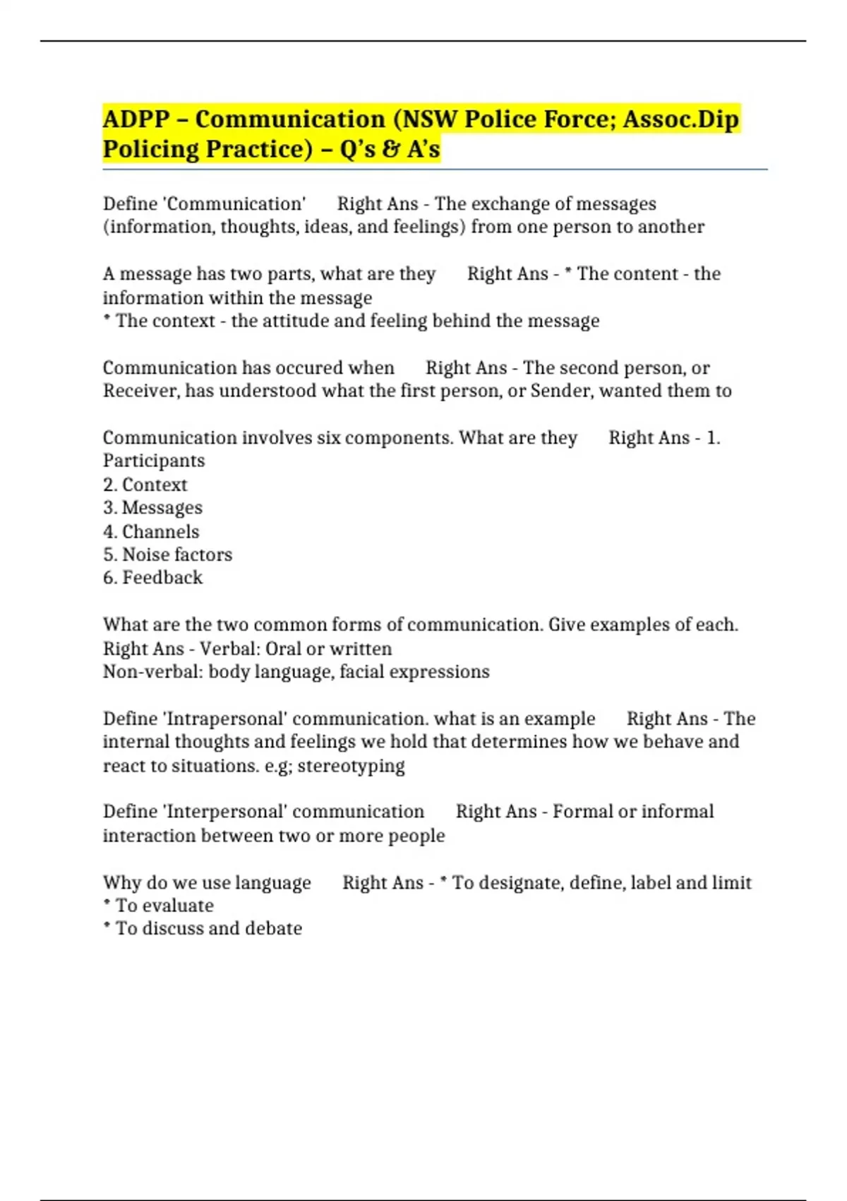 Define 'Communication' Right Ans - The exchange of messages