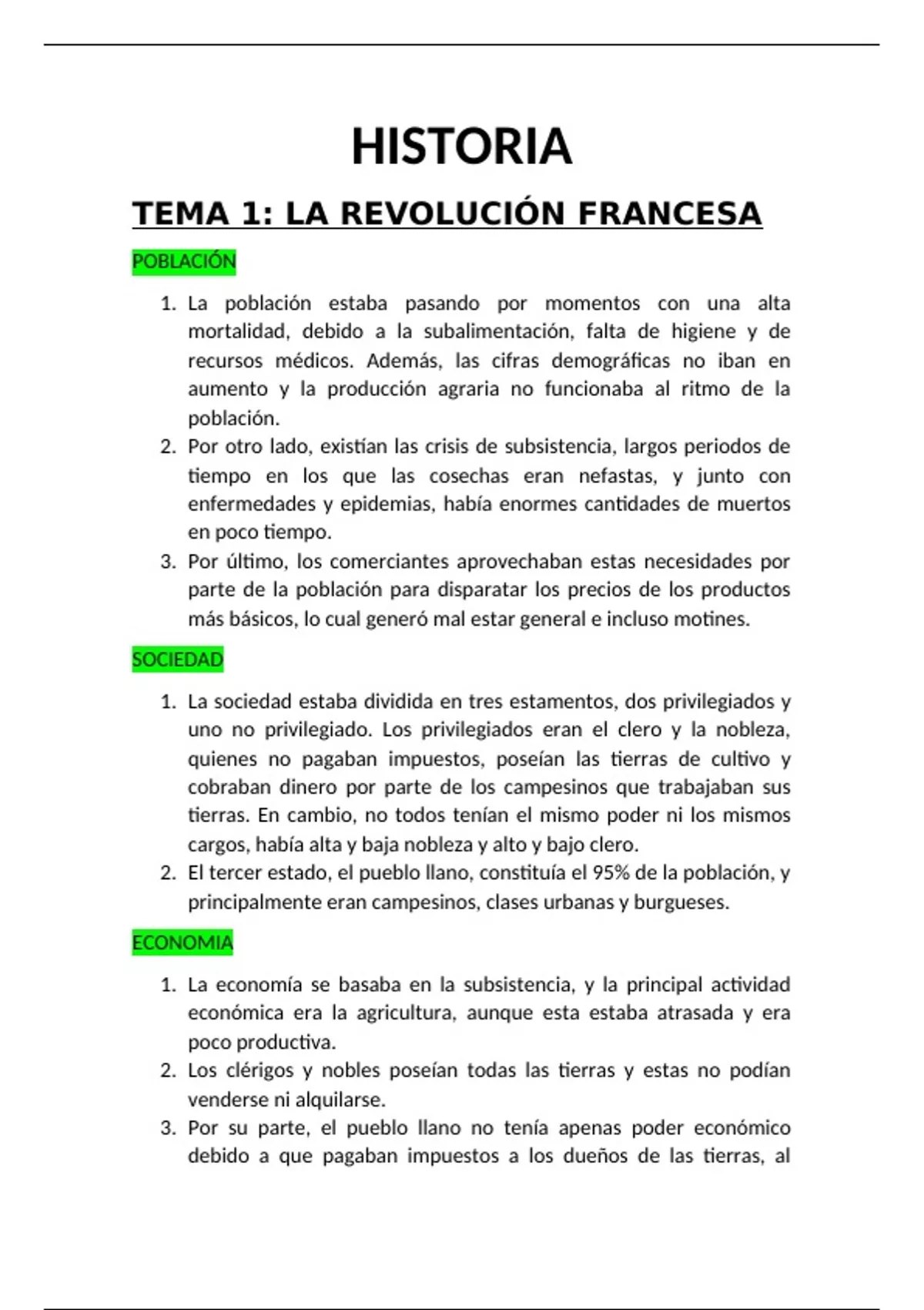 1. La sociedad estaba dividida en tres estamentos, dos privilegiados y
