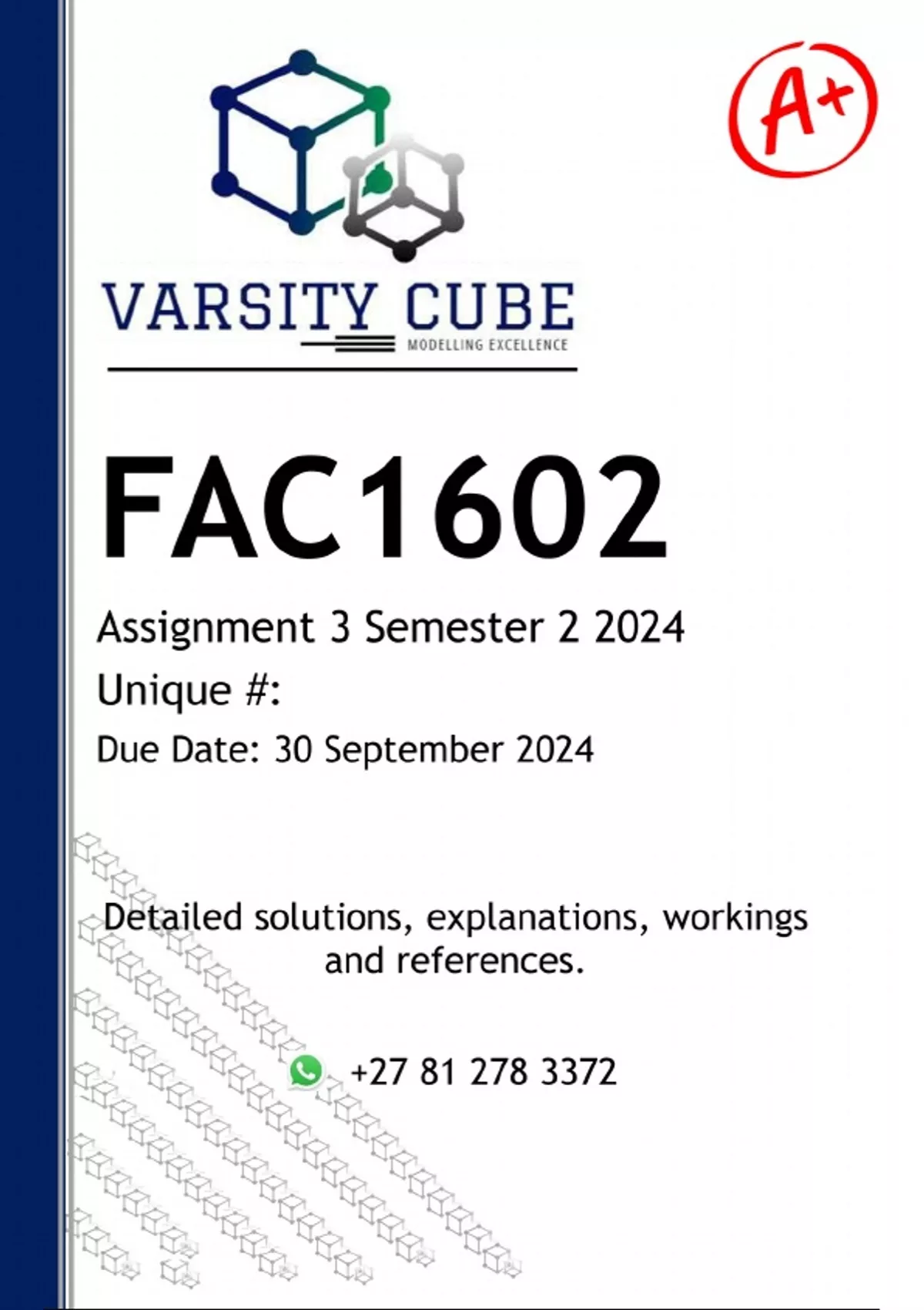 FAC1602 Assignment 3 (DETAILED ANSWERS) Semester 2 2024 - DISTINCTION GUARANTEED - DISTINCTION GUARANTEED - DISTINCTION GUARANTEED Answers, guidelines, workings and references