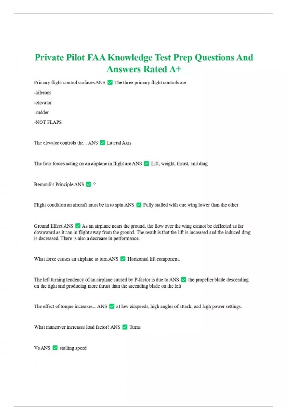 Private Pilot FAA Knowledge Test Prep Questions And Answers Rated A+