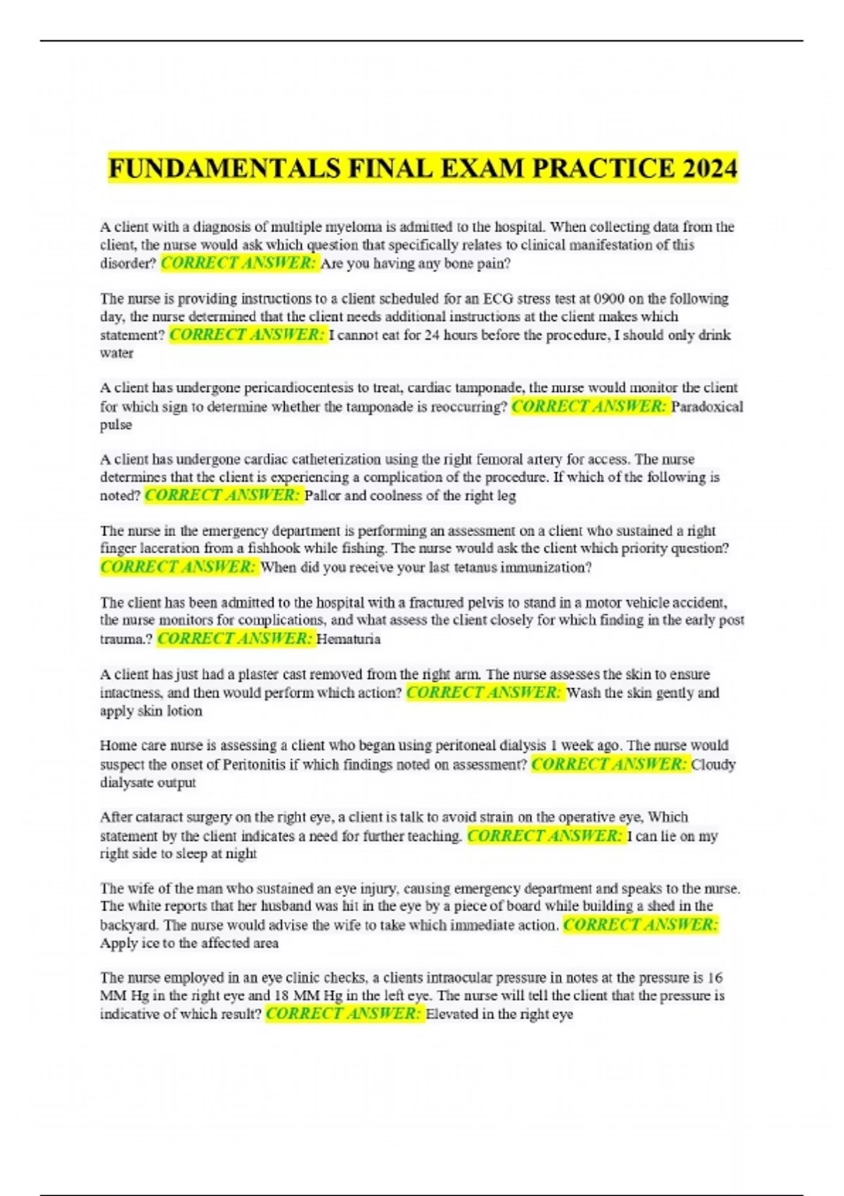 FUNDAMENTALS FINAL EXAM PRACTICE 2024