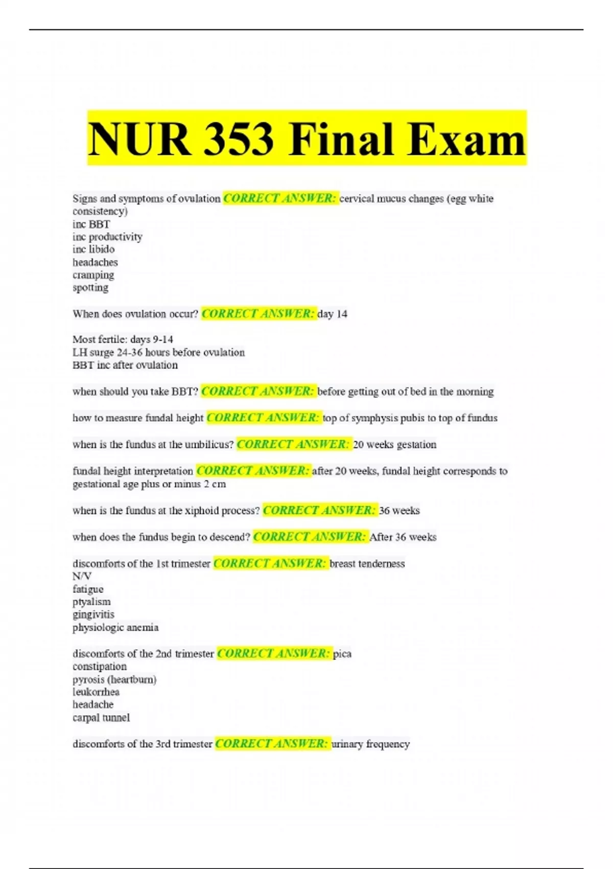 Exam of 20 pages for the course NUR 353 at NUR 353 (NUR 353 Final Exam)