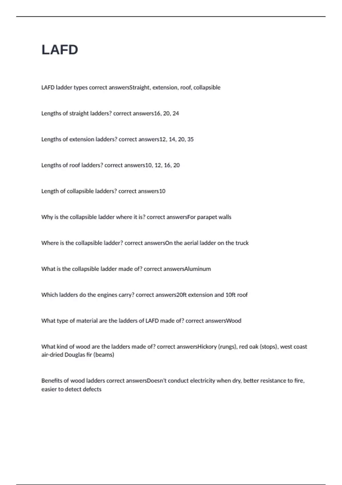 LAFD ladder types correct answersStraight, extension, roof, collapsible