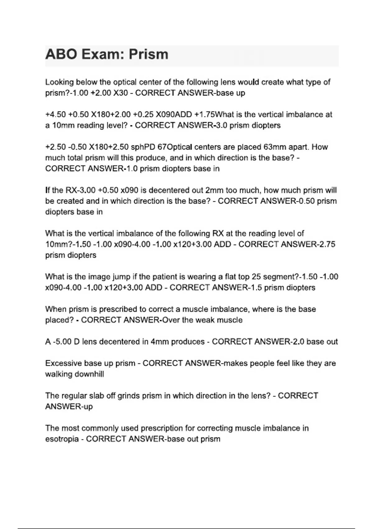 Exam of 1 pages for the course ABO at ABO (ABO Exam Prism)