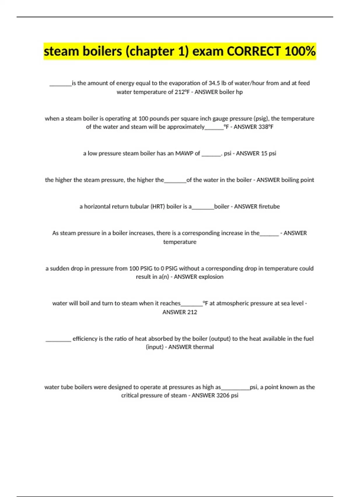a low pressure steam boiler has an MAWP of ______. psi - ANSWER 15 psi