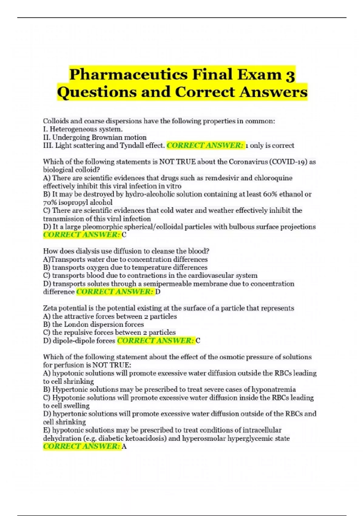 Pharmaceutics Final Exam 3 Questions and Correct Answers