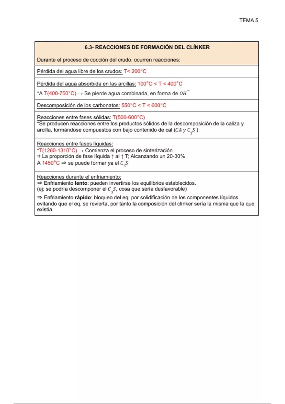 6.3- REACCIONES DE FORMACIÓN DEL CLÍNKER