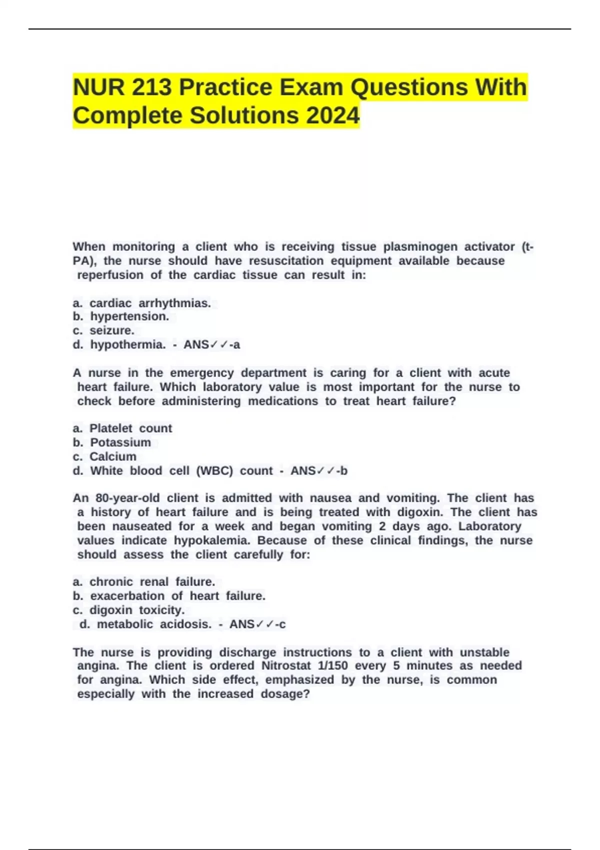 NUR 213 Practice Exam Questions With Complete Solutions 2024.