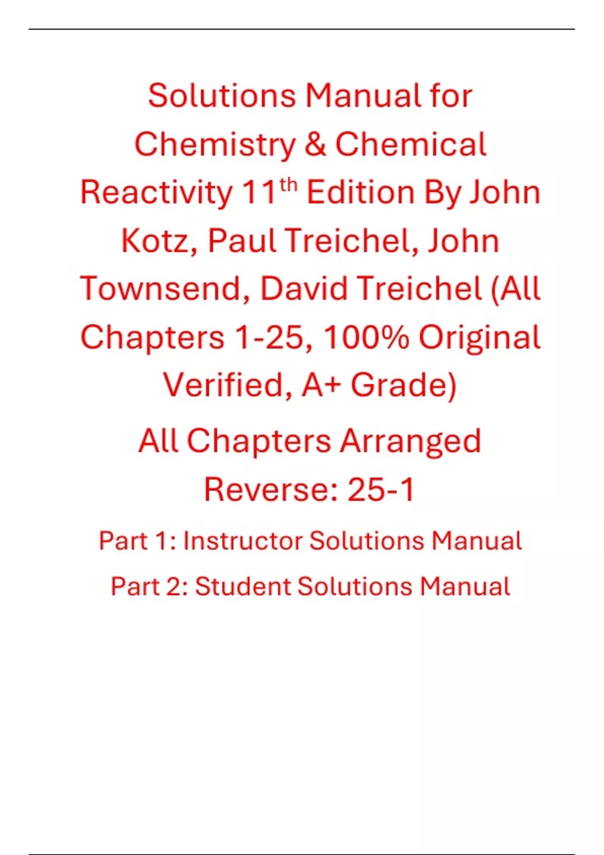 , Solution and Answer Guide: Kotz Treichel Townsend Treichel, Chemistry and Chemical Reactivity 11e, 978-0-357-85140-1,