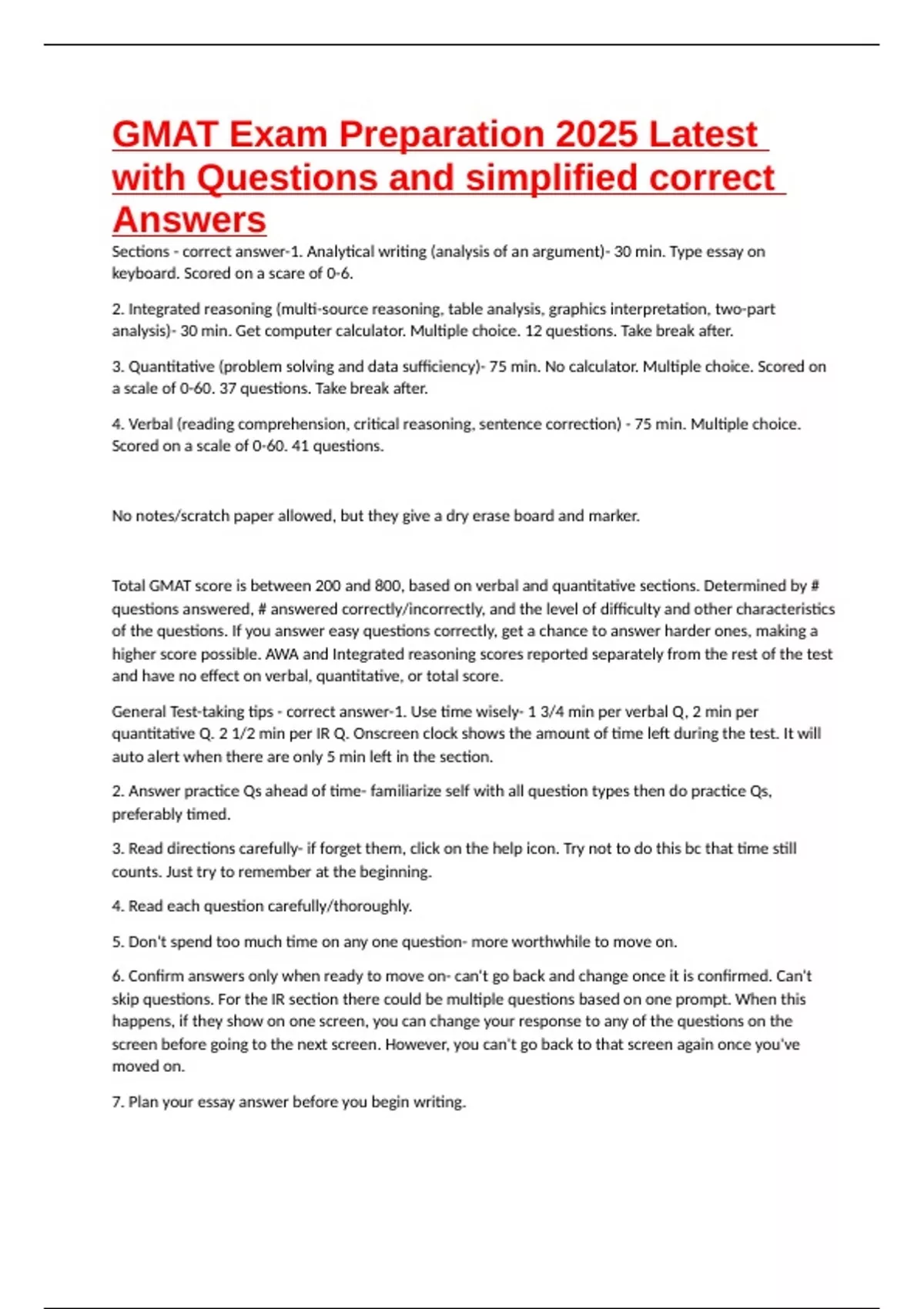 GMAT Exam Preparation 2025 Latest with Questions and simplified correct Answers