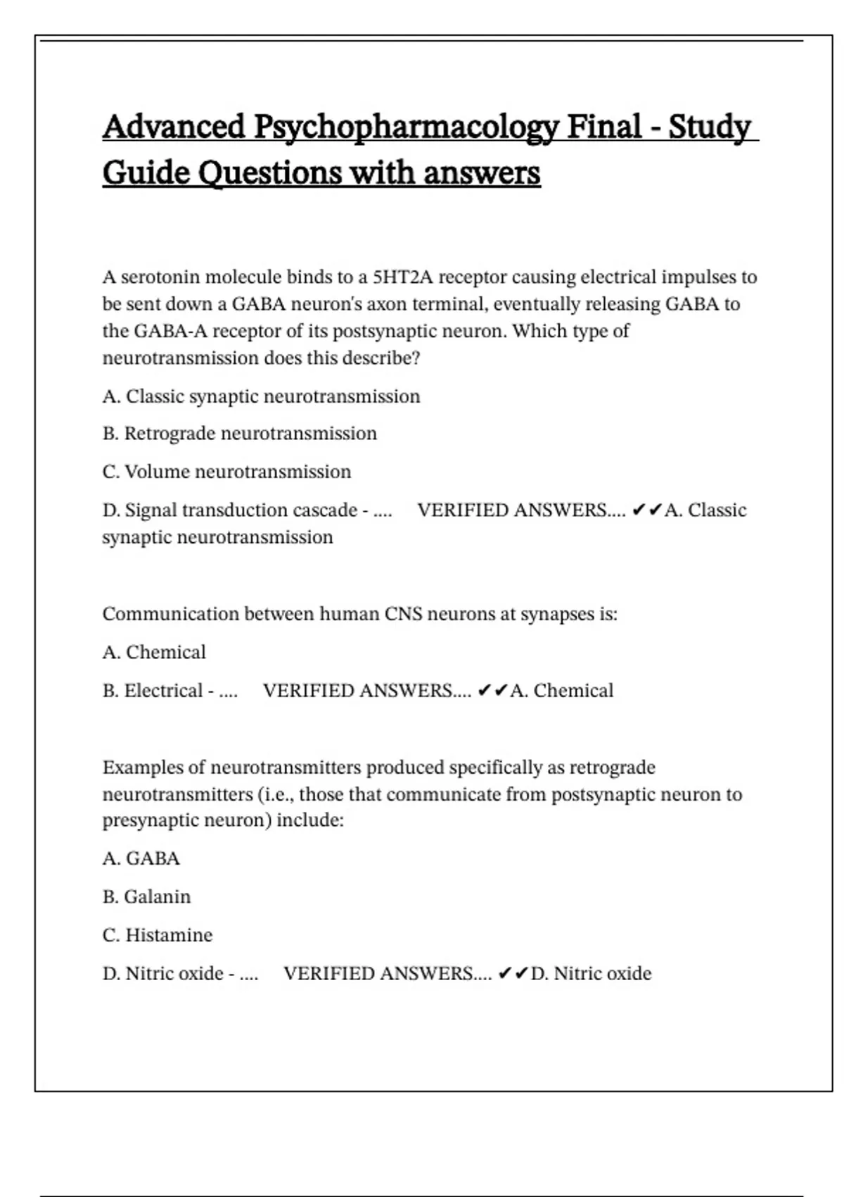 D. Serotonin, GABA, histamine, and neuropeptides - ....🔰VERIFIED