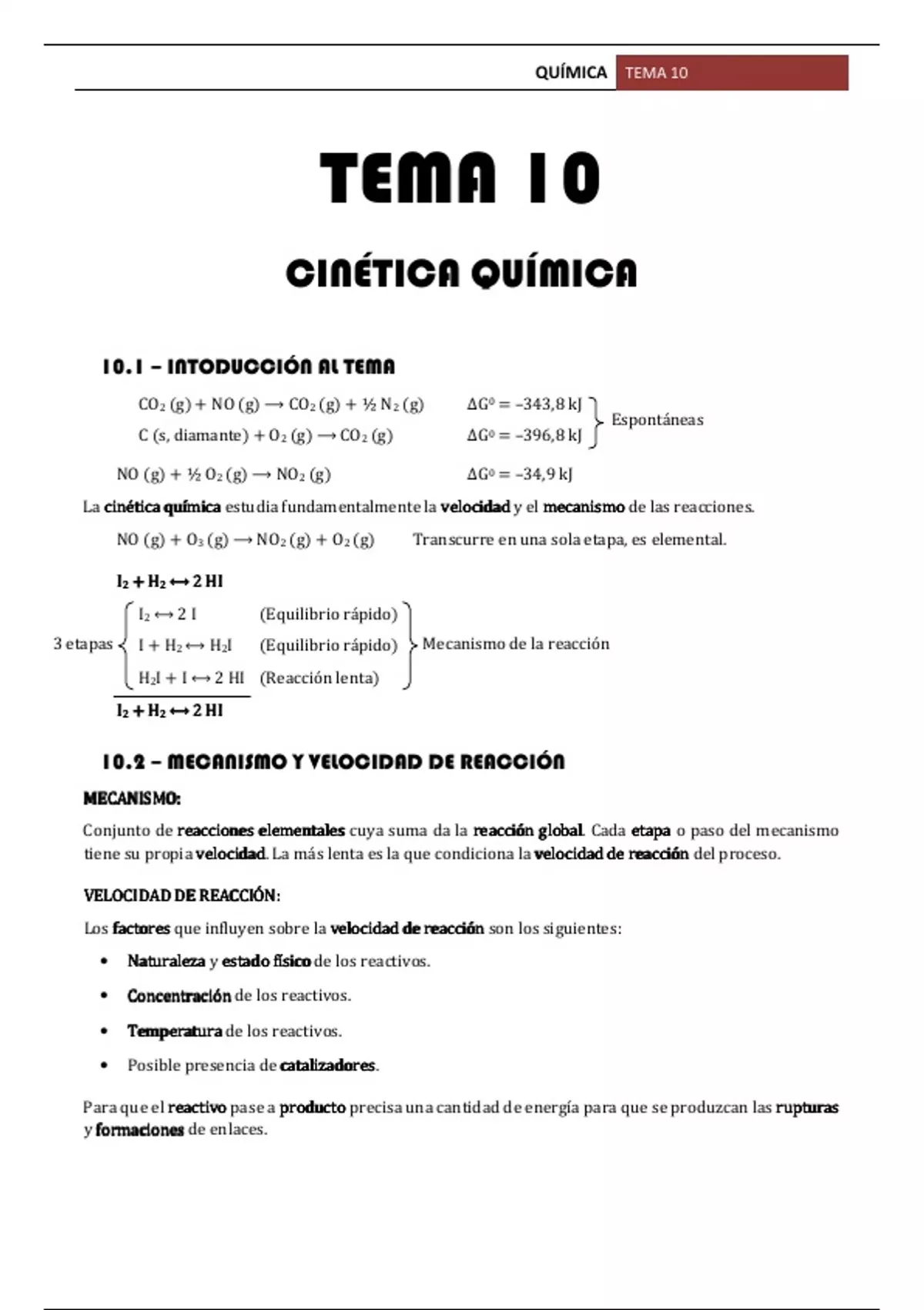 10.2 – MECANISMO Y VELOCIDAD DE REACCIÓN