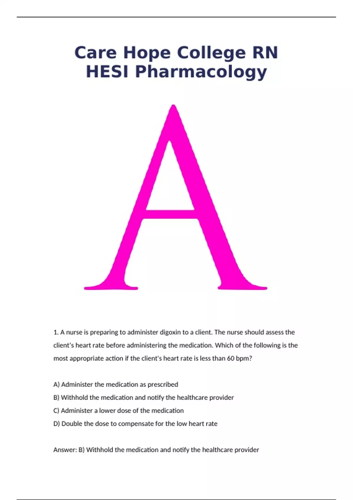 Care Hope College RN HESI Pharmacology questions with well-detailed Answers