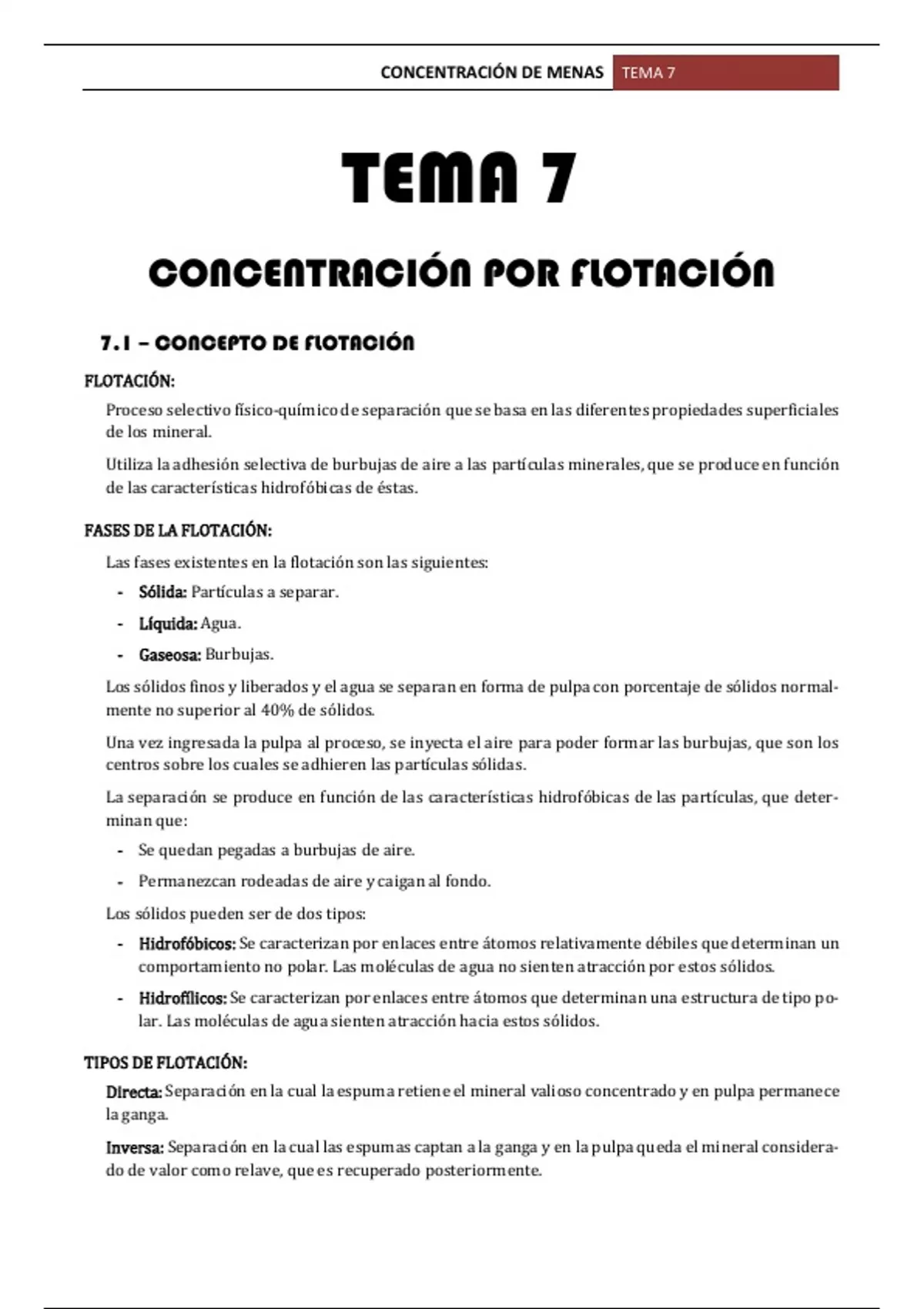 7.1 – CONCEPTO DE FLOTACIÓN