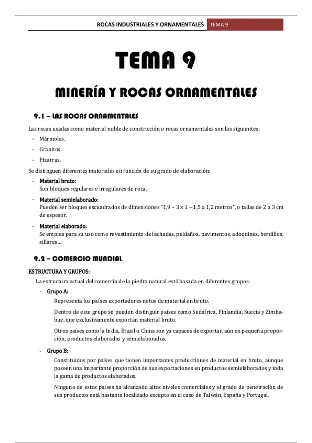 , ROCAS INDUSTRIALES Y ORNAMENTALES TEMA 9