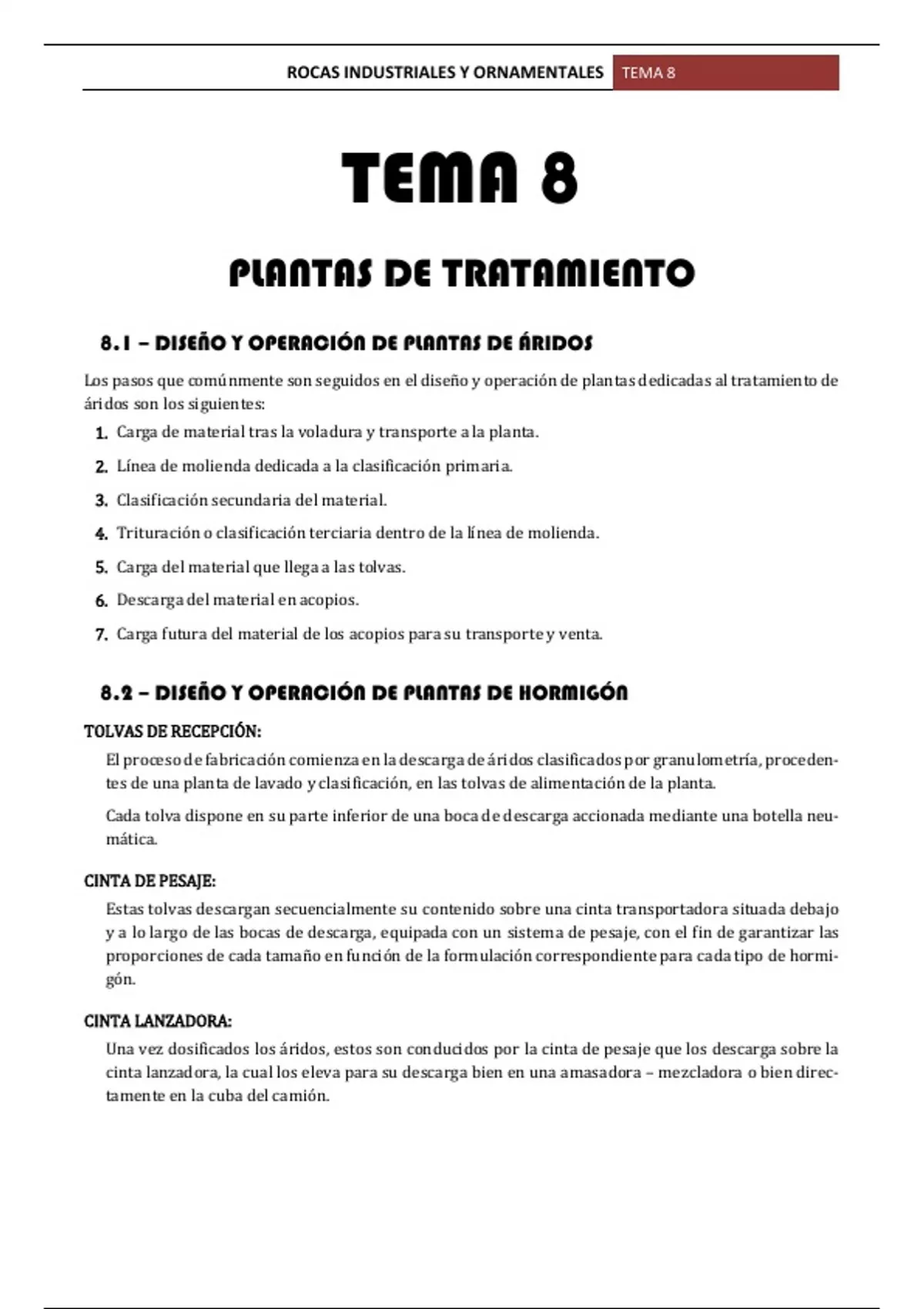8.1 – DISEÑO Y OPERACIÓN DE PLANTAS DE ÁRIDOS