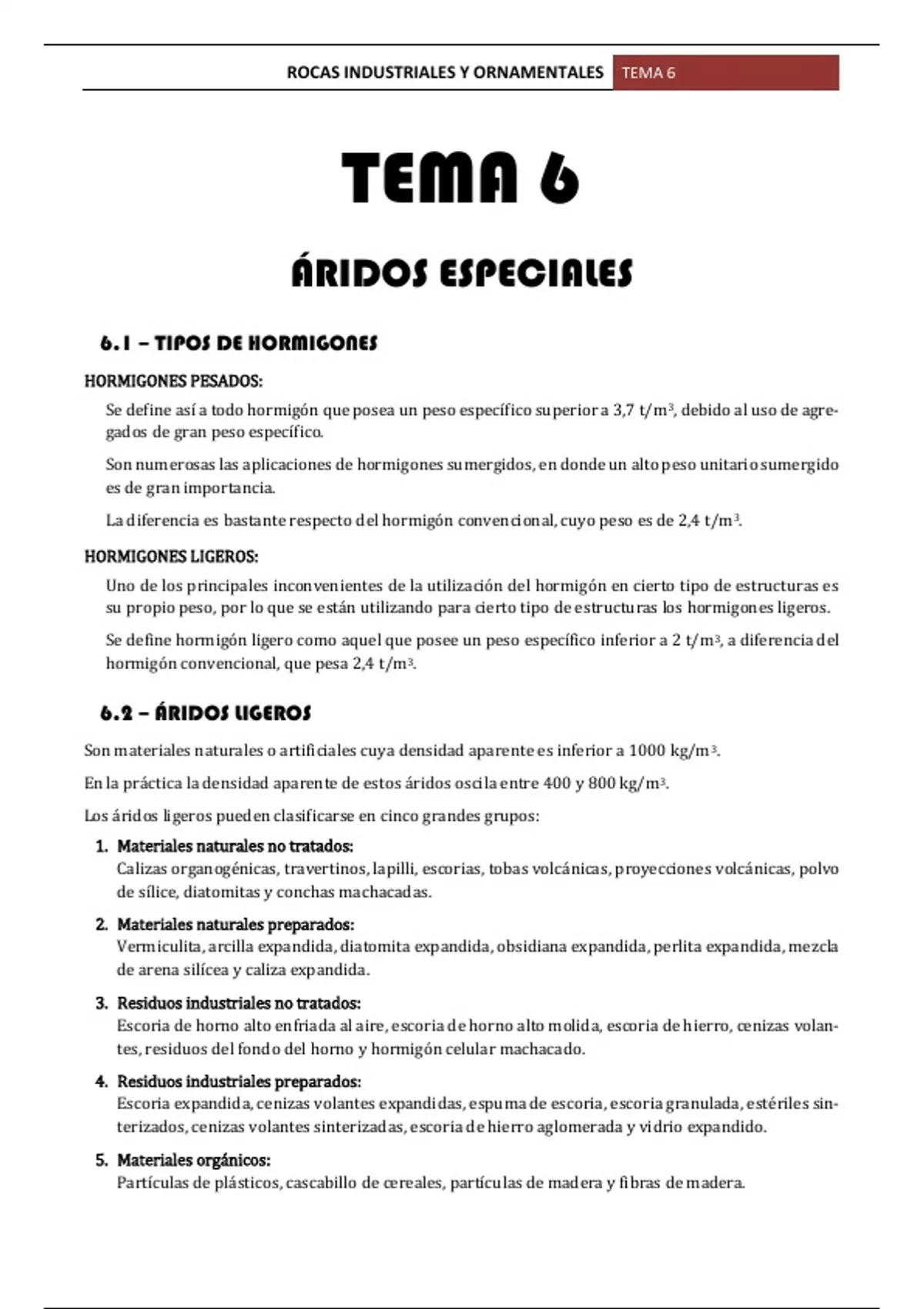 6.2 – ÁRIDOS LIGEROS