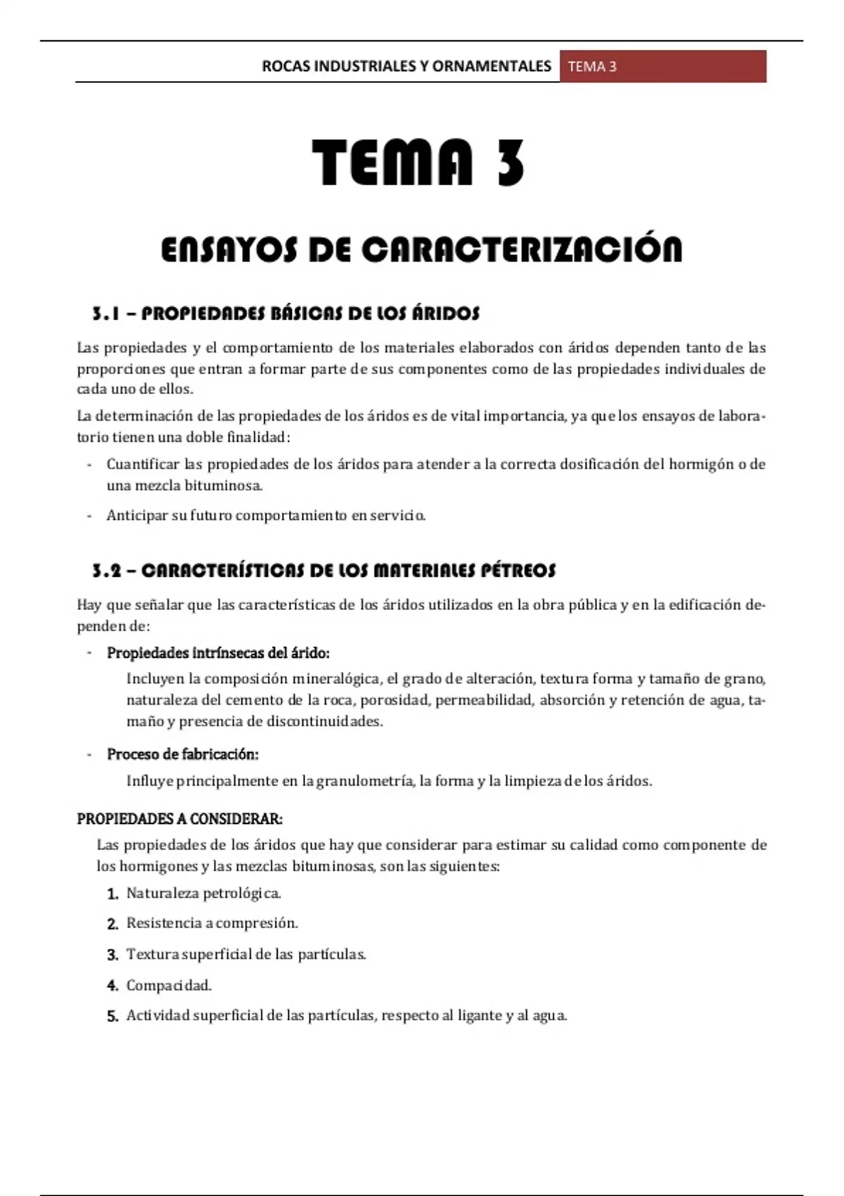 3.2 – CARACTERÍSTICAS DE LOS MATERIALES PÉTREOS