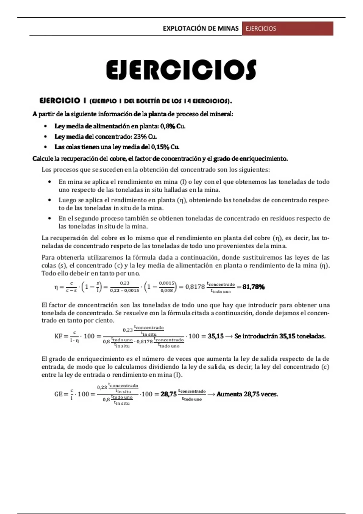 , EXPLOTACIÓN DE MINAS EJERCICIOS
