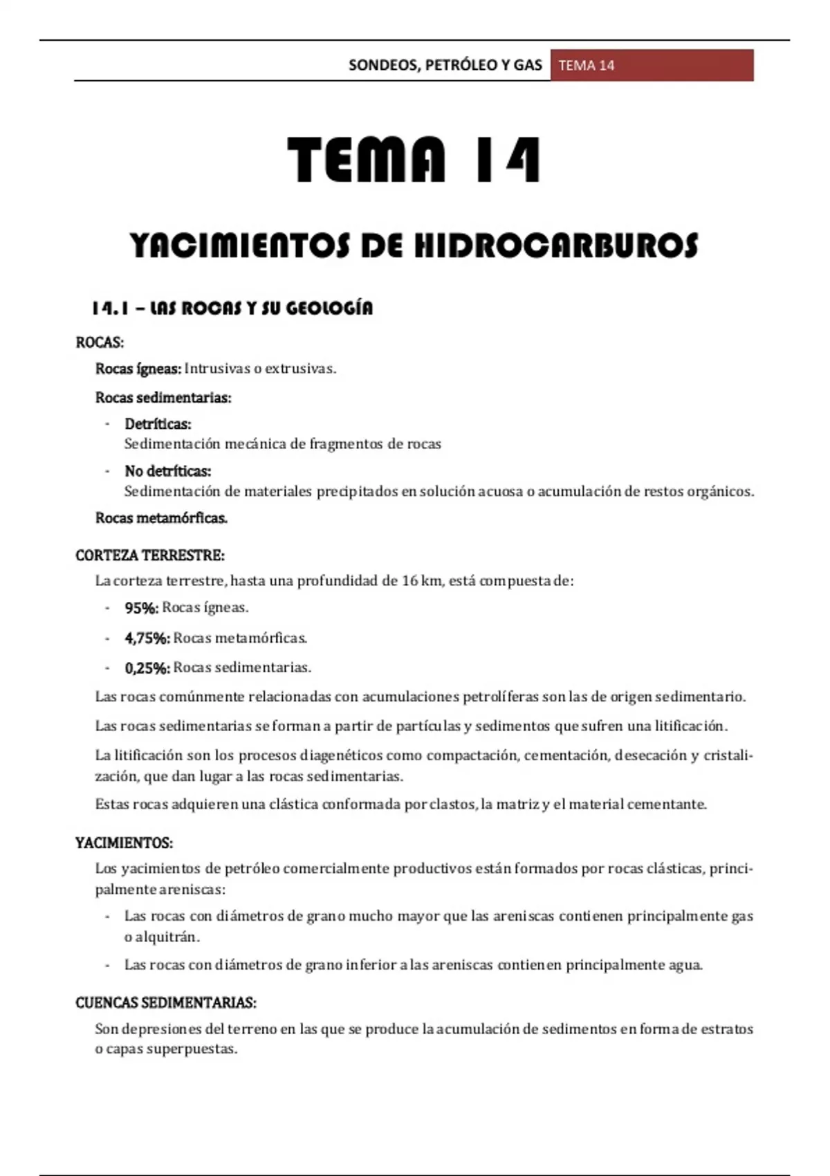SONDEOS, PETRÓLEO Y GAS TEMA 14
