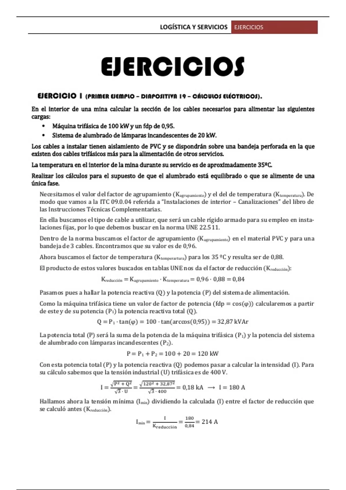EJERCICIO 1 (PRIMER EJEMPLO – DIAPOSITIVA 19 – CÁLCULOS ELÉCTRICOS).