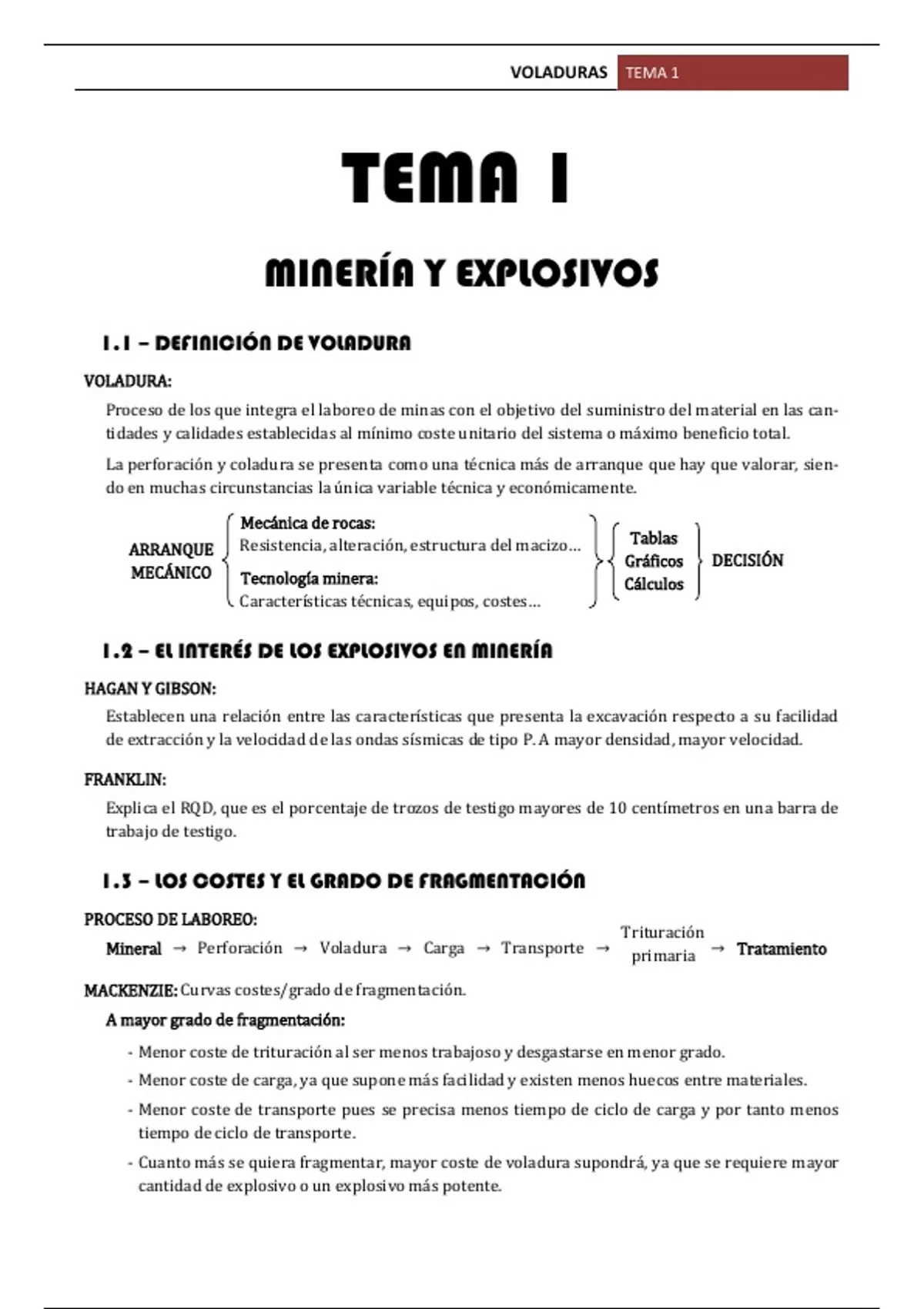 Sumario Tema 1 - Minería y explosivos