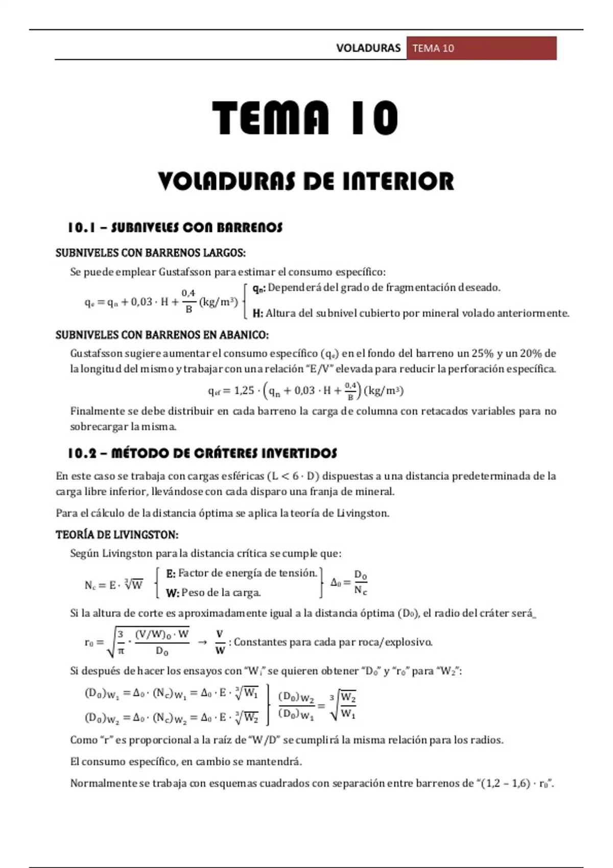 la longitud del mismo y trabajar con una relación “E/V” elevada para reducir la perforación específica.