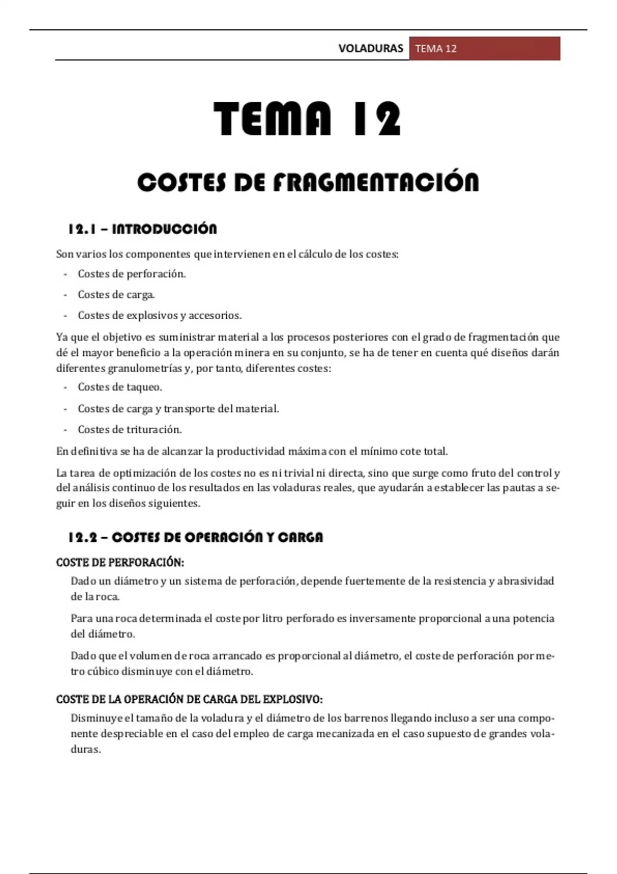 12.2 – COSTES DE OPERACIÓN Y CARGA
